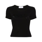 black stretch-cotton ribbed knit rhinestone embellishment logo embellishment crew neck short sleeves straight hem Logo ribbed cotton cropped t-shirt Size and Fit - This piece fits true to size. We recommend you get your regular size. Model is 1,75m / 5ft 8in wearing size S