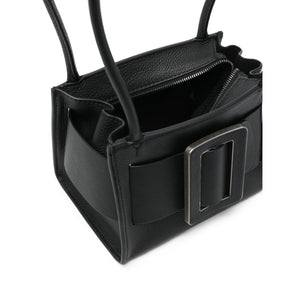 Bobby buckled tote from BOYY featuring black, calf leather, decorative buckle detailing, belted waist, two long top handles and top zip fastening. Bobby 18 Soft leather handbag Size and Fit - Width 7,09 in / 18 cm Height 5,12 in / 13 cm Depth 4,72 in / 12 cm Handle 9,84 in / 25 cm