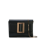 Custodia da viaggio con fibbia in pelle nera di Boyy con parte superiore pieghevole e corpo rettangolare. Buckle Travel Case leather crossbody bag Size and Fit - Width 21 cm. Height 16 cm. Depth 3.5 cm