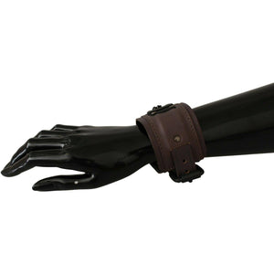 Scervino Street Brown Leather Branded Wide Buckle Closure Bracelet
