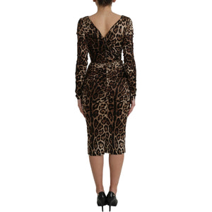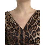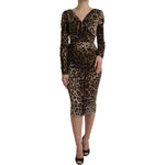 Dolce & Gabbana Brown Leopard Print Bodycon V-neck Midi Dress