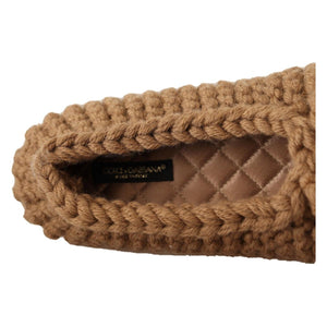 Dolce & Gabbana Brown Slip On Ballerina Flats Wool Knit Shoes