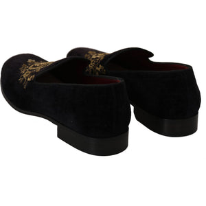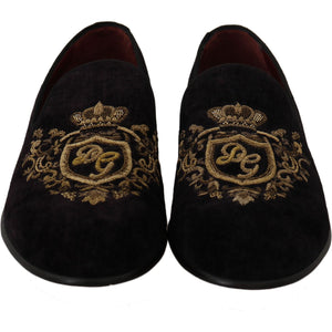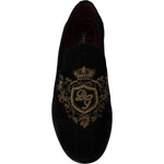 Dolce & Gabbana Loafers Black Velvet Gold Crown