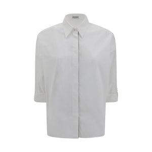 Brunello Cucinelli’s shiny cotton monili Shirt is an elegant and sophisticated piece perfect for a refined look. Featuring a classic collar and a hidden button front closure, it offers a clean, minimalist design. Insets with the brand’s iconic jewelry add a touch of understated luxury. Adjustable button cuffs allow you to adjust the fit, while the regular silhouette ensures comfort and versatility. This shirt is a true must-have in the wardrobe of those seeking elegance and quality.