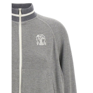 Brunello Cucinelli Ribbed-collar zip-up cardigan