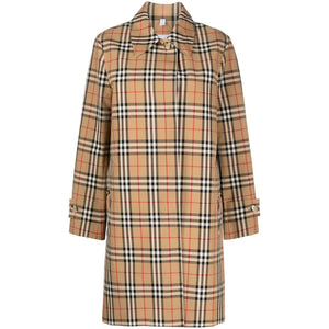 plaid-check pattern jacket from BURBERRY featuring brown, cotton, plaid check pattern, spread collar, concealed front fastening, long sleeves, buttoned cuffs, above-knee length and straight hem. Check motif raincoat Size and Fit - This piece fits true to size. We recommend you get your regular size. Model is 1,75m / 5ft 8in wearing size 8 (UK)