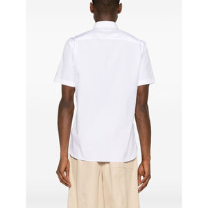 white stretch-cotton poplin texture signature Equestrian Knight embroidery classic collar front button fastening short sleeves straight hem EKD logo cotton shirt Size and Fit - This piece fits true to size. We recommend you get your regular size. Model is 1,84m / 6ft 1in wearing size M