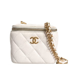 Chanel White Matelasse Lambskin Gold Chain Shoulder Vanity Mirror