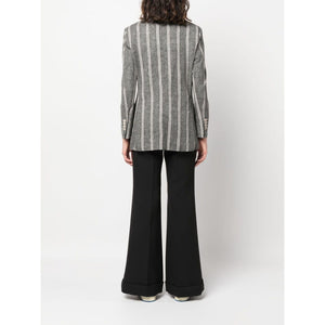 double-breasted striped blazer from CIRCOLO 1901 featuring dark grey, white, stretch-cotton, vertical stripe pattern, notched lapels, double-breasted button fastening, long sleeves, buttoned cuffs, chest welt pocket and two front patch pockets. Striped double-breasted jacket Size and Fit - This piece fits true to size. We recommend you get your regular size. Model is 1,75m / 5ft 8in wearing size 40 (IT)