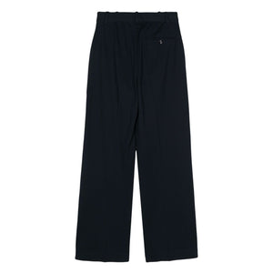 navy blue stretch-cotton piqué weave belt loops at the waist two side slash pockets pressed crease rear welt pocket straight leg concealed front button, hook and zip fastening Pique trousers Size and Fit - This piece fits true to size. We recommend you get your regular size. Model is 1,75m / 5ft 8in wearing size 40 (IT)
