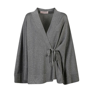 Gray Kimono, closure with front and behind cords, low -cut, large sleeves. Viscose short kimono Size and Fit - This piece fits true to size. We recommend you get your regular size. Model is 1,75m / 5ft 8in wearing size 40 (IT)