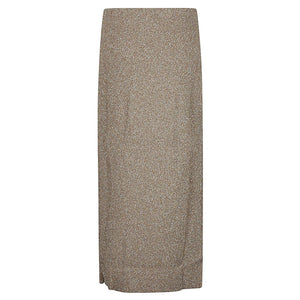Gonna oro, spacco sul lato sinistro, midi, vita elastica. Viscose midi skirt Size and Fit - This piece fits true to size. We recommend you get your regular size. Model is 1,75m / 5ft 8in wearing size 40 (IT)