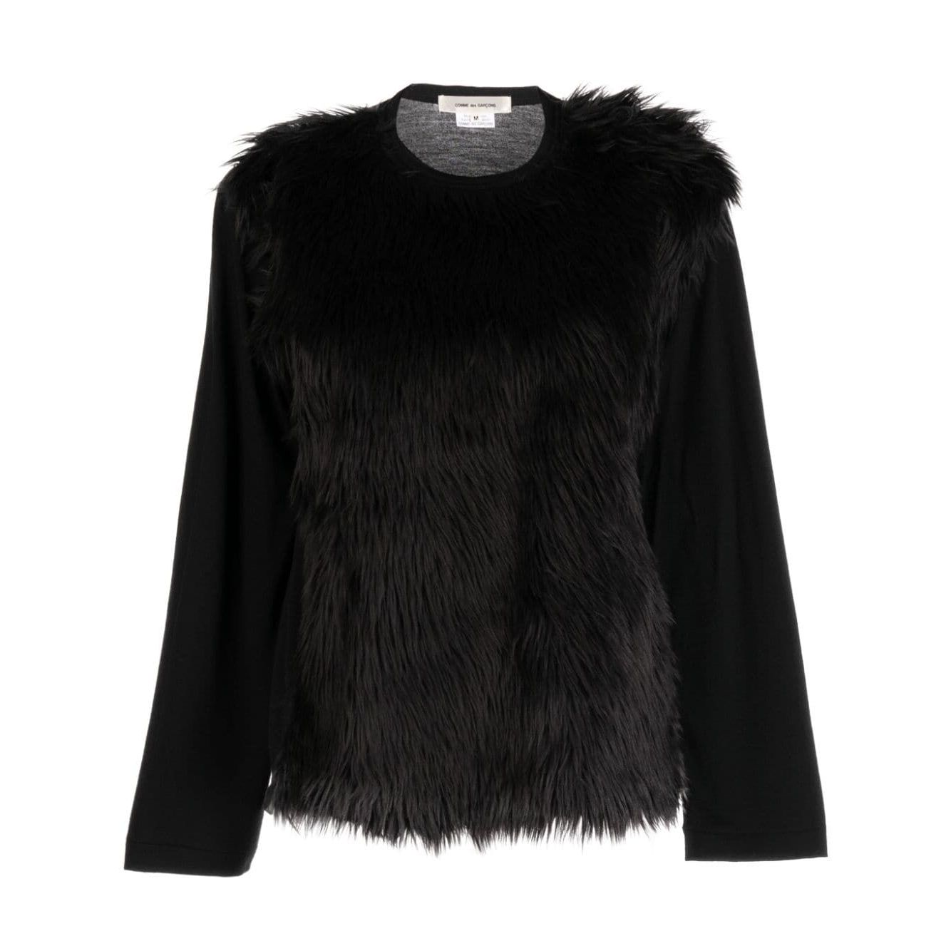 fur-detailing long-sleeve T-shirt from COMME DES GARÇONS featuring black, wool, faux-fur detailing, crew neck, long sleeves and straight hem. Faux-fux t-shirt Size and Fit - This piece fits true to size. We recommend you get your regular size. Model is 1,75m / 5ft 8in wearing size S