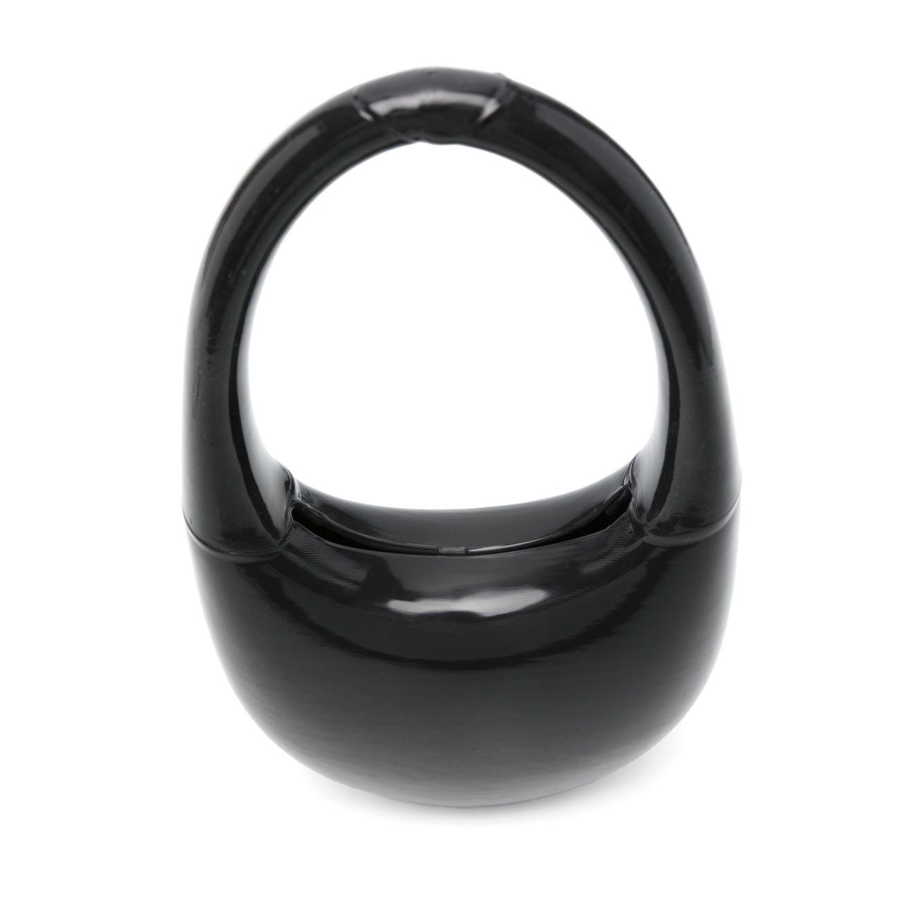 black open top embossed logo to the front single top handle Swipe shoulder bag Size and Fit - Depth 5 cm, Handle 16 cm, Height 13 cm, Width 17 cm