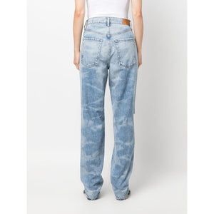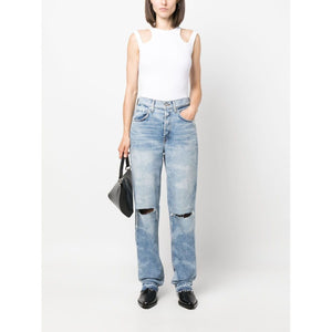 Kate straight-leg ripped jeans from Cotton Citizen featuring light blue, cotton blend, bleach wash, whiskering effect, ripped detailing, cut-out detailing, logo patch to the rear, concealed fly and button fastening, belt loops, classic five pockets, straight leg and extra-long length. Relaxed fit denim jeans Size and Fit - This piece fits true to size. We recommend you get your regular size. Model is 1,75m / 5ft 8in wearing size 27 (WAIST CM)