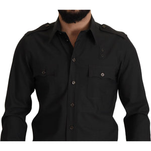 Dolce & Gabbana Dark Green Cotton Slim Fit Casual Men Shirt