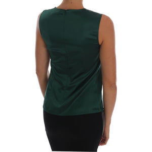 Dolce & Gabbana Dark Green Silk Sleeveless Round Neck Tank Top