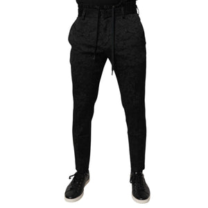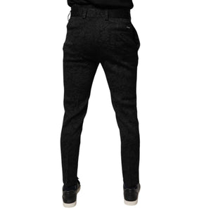 Dolce & Gabbana Black Brocade Polyester Skinny Dress Pants
