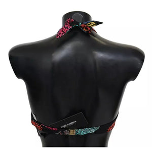 Dolce & Gabbana Black Corals Print Swimsuit Beachwear Bikini Top