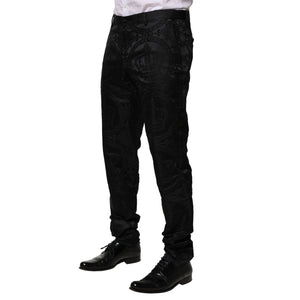 Dolce & Gabbana Black Cotton DG Crown Dress Pants