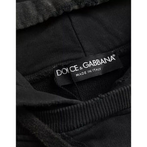Dolce & Gabbana Black Cotton Hooded Short Sleeves Cropped T-shirt