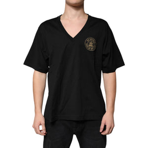 Dolce & Gabbana Black Cotton Logo Vneck Short Sleeve T-shirt