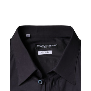 Dolce & Gabbana Black Cotton Stretch Dress GOLD Formal Shirt