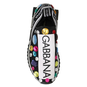 Dolce & Gabbana Black Multicolor Crystal Sneakers Shoes