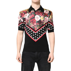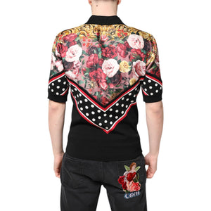 Dolce & Gabbana Black Floral Collared Short Sleeve T-shirt