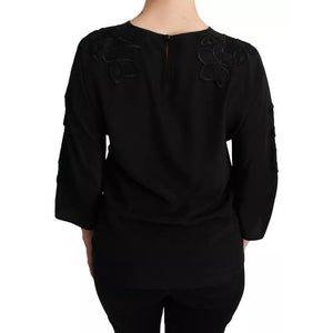 Dolce & Gabbana Black Floral Embroidered Blouse Silk Top