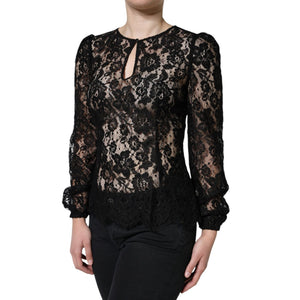 Dolce & Gabbana Black Floral Lace See Through Long Sleeve Top