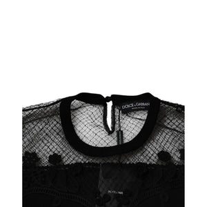 Dolce & Gabbana Black Floral Lace Short Sleeves Blouse Top