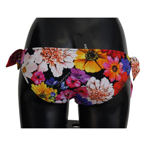Dolce & Gabbana Black Floral Print Swimsuit Bikini Bottom Swimwear