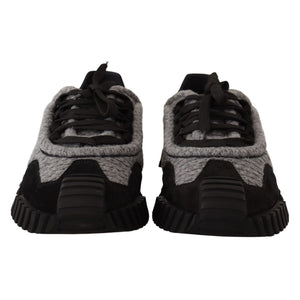 Dolce & Gabbana Black Gray Fabric Lace Up NS1 Sneakers Shoes
