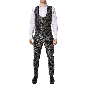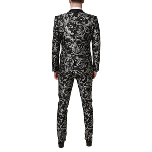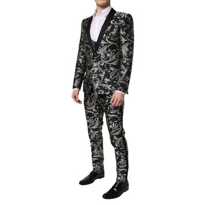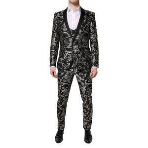 Dolce & Gabbana Black Gray MARTINI Jacquard Men 3 Piece Suit