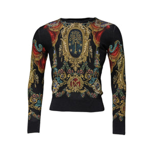 Dolce & Gabbana Black Heraldic DG Silk Round Neck Pullover Sweater