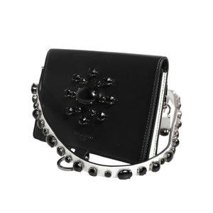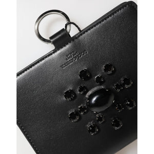 Dolce & Gabbana Black Leather Crystal Embellished Card Holder Wallet