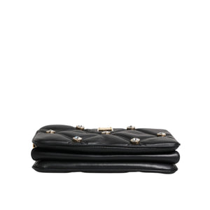 Dolce & Gabbana Black Leather Crystal Embellished Logo Shoulder Bag