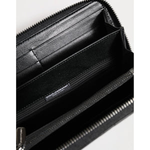 Dolce & Gabbana Black Leather DG Plaque Zip Around Continental Wallet