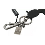 Dolce & Gabbana Black Leather Fisherman Logo Badge Keyring Keychain