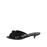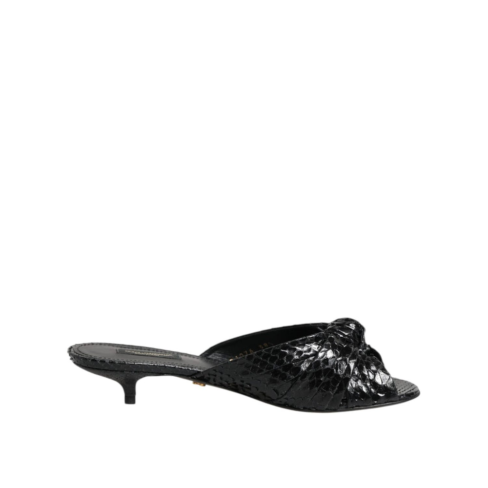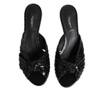 Dolce & Gabbana Black Leather Heels Slides Sandals Shoes