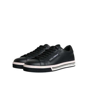 Dolce & Gabbana Black Leather Low Top Men Sneakers Shoes