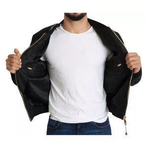 Dolce & Gabbana Black Logo Patch Brocade Bomber Full Zip Jacket
