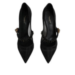 Dolce & Gabbana Black Mesh Mary Jane Crystal Heel Pump Shoes