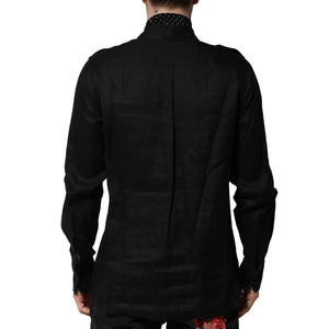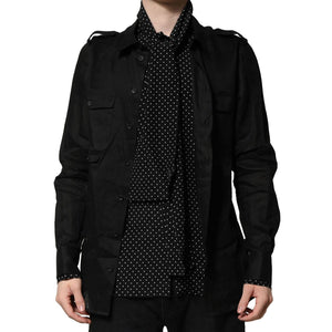 Dolce & Gabbana Black Polka Dot Collar Tie Neck Casual Shirt