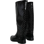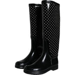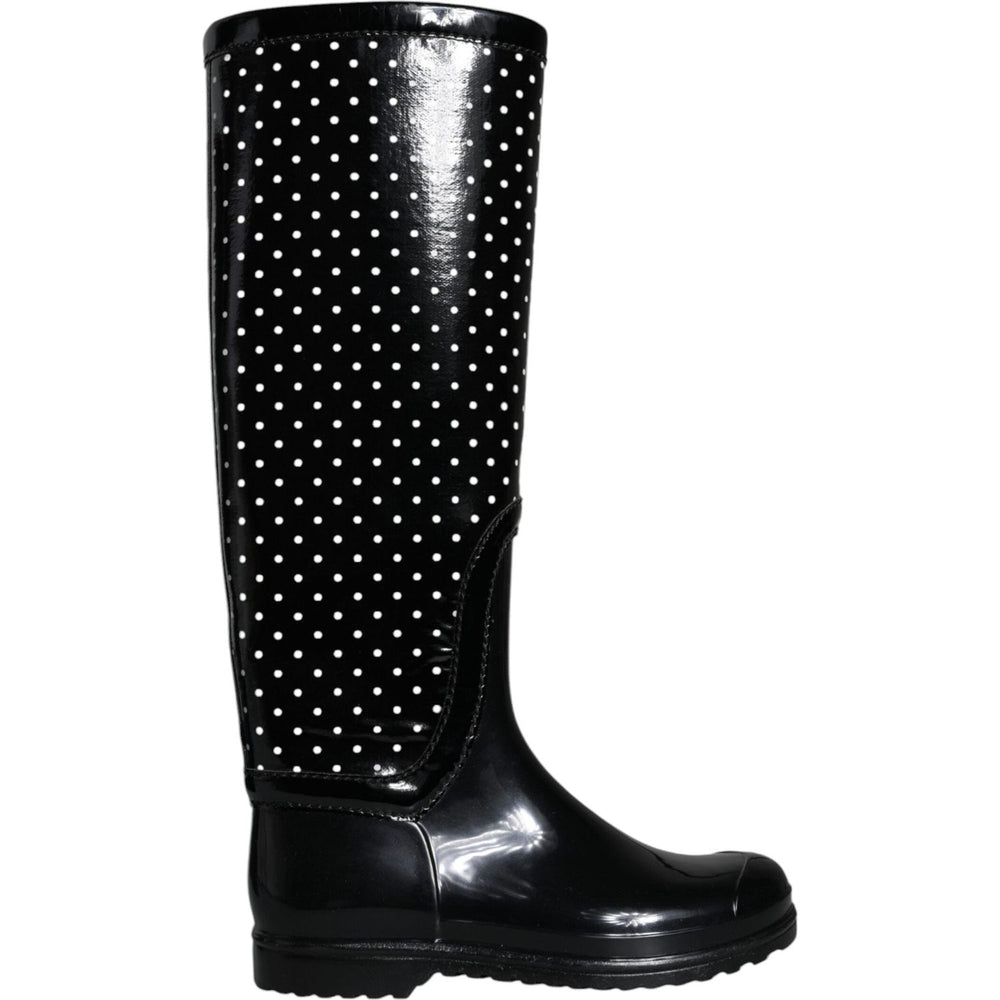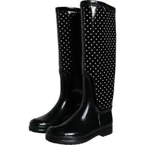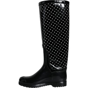 Dolce & Gabbana Black Polka Dot Rubber Knee High Boots Shoes