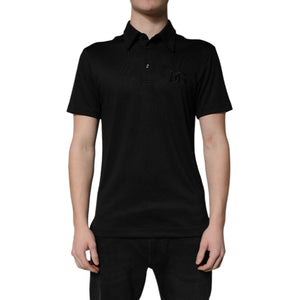Dolce & Gabbana Black Polyester DG Logo Collared Polo T-shirt