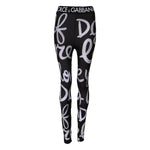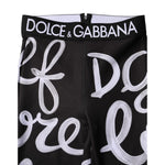Dolce & Gabbana Black Polyester Logo Print Mid Waisted Pants