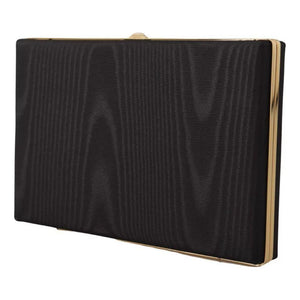 Gorgeous brand new with tags and box, 100% Authentic Dolce & Gabbana miniature clutch, black model, covered with dense moire silk. The minaudière is closed with a golden frame lid.