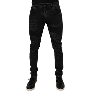Dolce & Gabbana Black Tattered Cotton Skinny Men Denim Jeans
